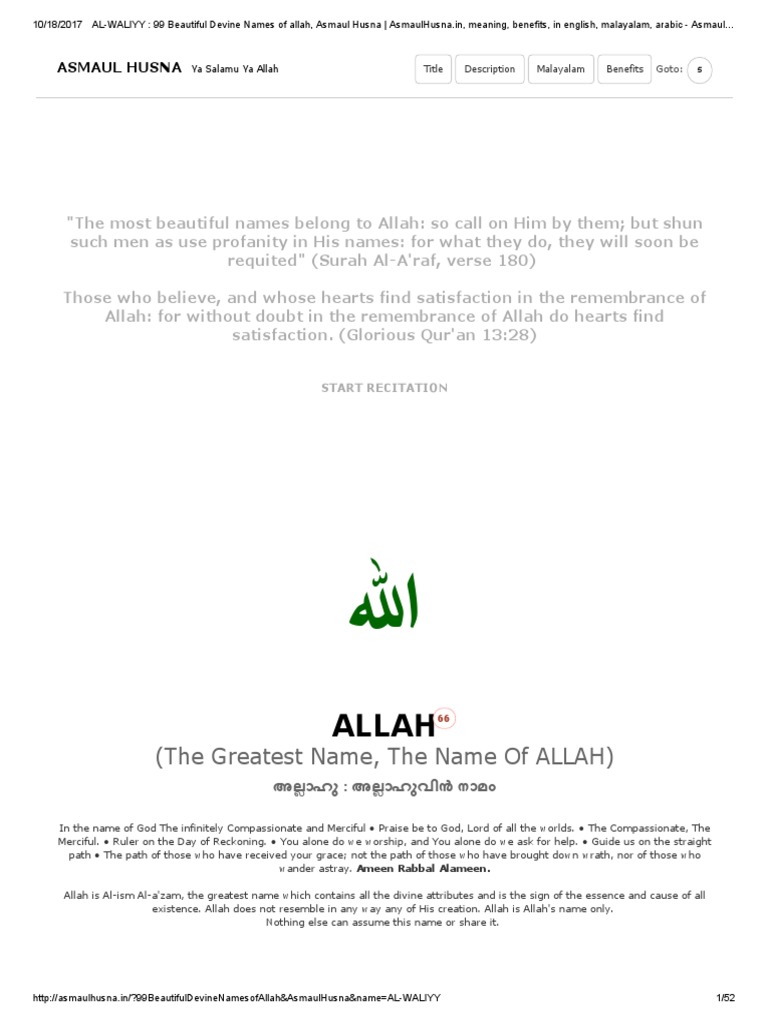 Al Waliyy 99 Beautiful Devine Names Of Allah Asmaul Husna Asmaulhusna Pdf Allah God In Islam Football Player Michael Oher