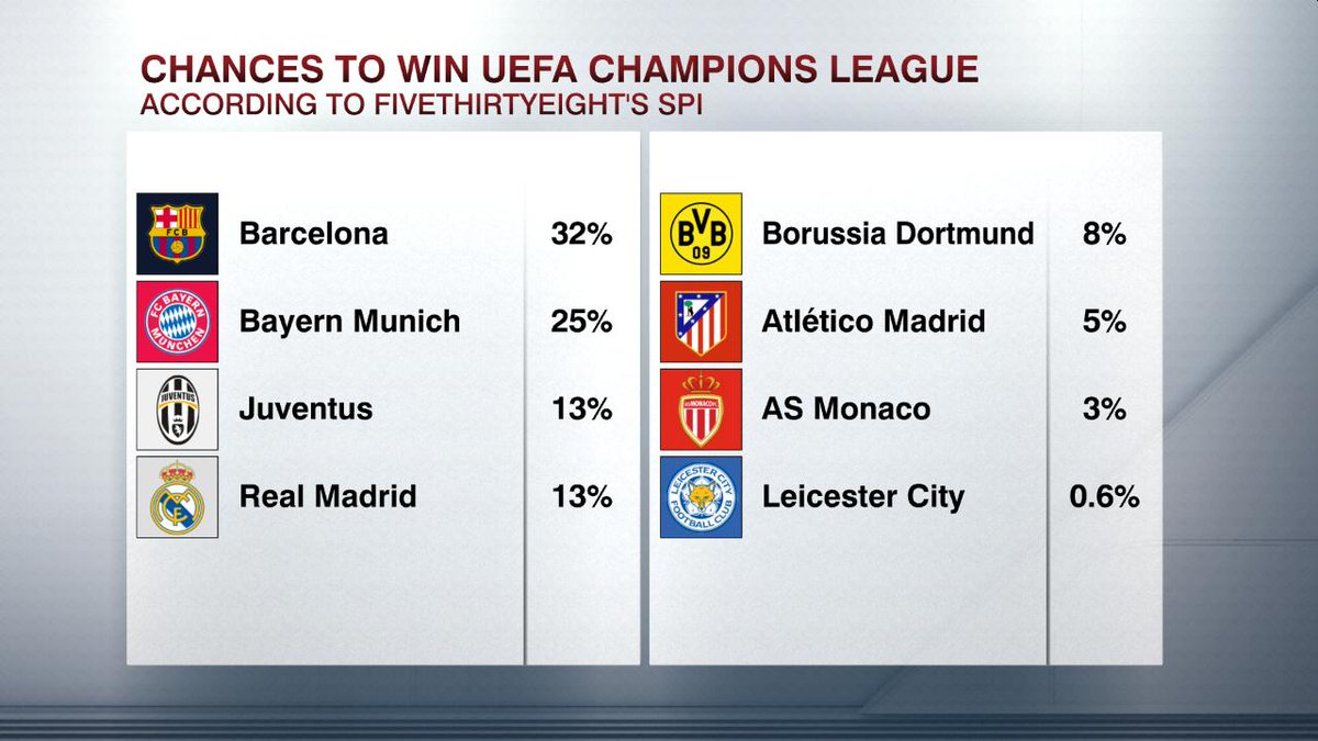 - Espn Stats Info On Twitter A Look At The Updated Chances To Win The Champions League From Fivethirtyeight S Soccer Power Index
