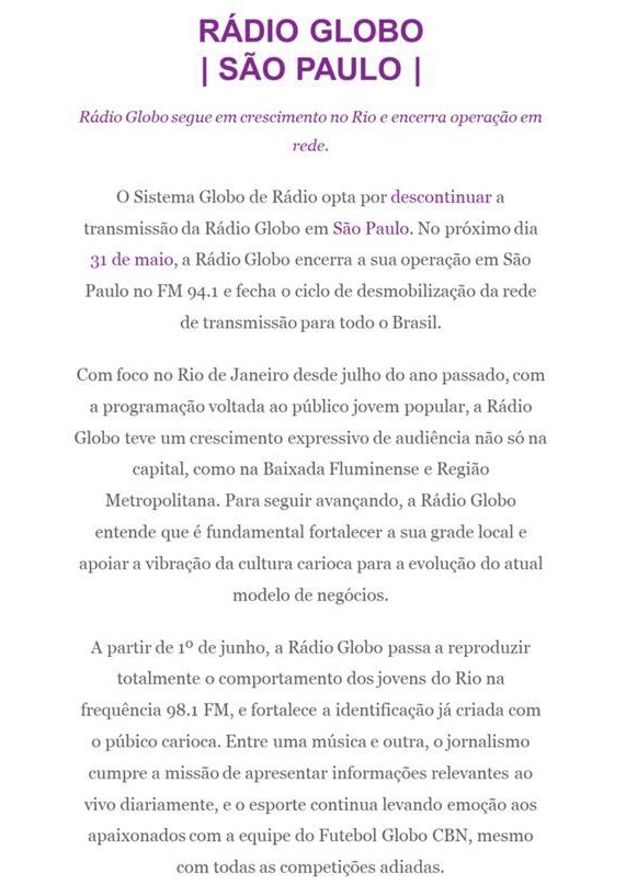 - O Adeus A Radio Globo Am De Sao Paulo Radio Vicente Pallotti Fm 88 7 Coronel Vivida Parana