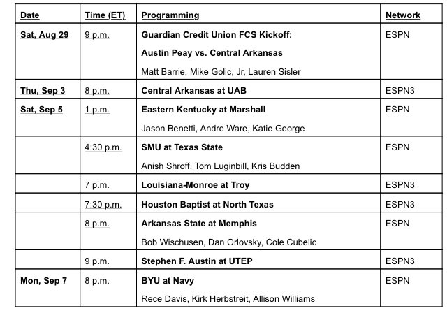 - Espn Announces Broadcast Schedule For First 2 Weekends Of 2020 College Football Season