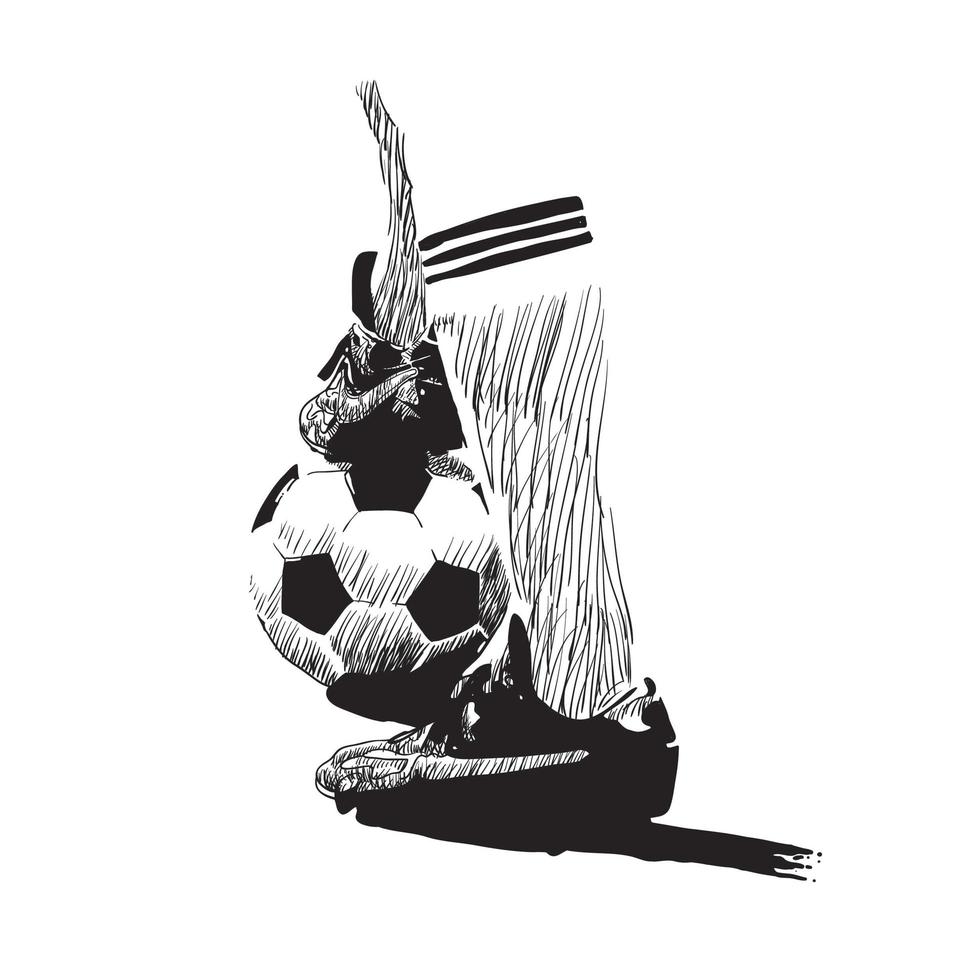 - Soccer Ball Under Player Boot Hand Drawn Sketch Black Line On White Background Sport Collection Vector Illustration