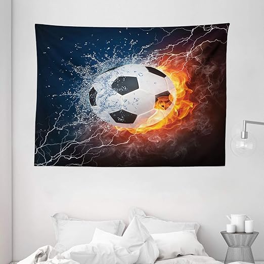 Amazon Com Ambesonne Sports Tapestry Soccer Ball On Fire And Water Flame Splashing Thunder Strike Abstract Concept Art Wide Wall Hanging For Bedroom Living Room Dorm 80 X 60 Navy White Home Surat Yasin Surah Yaseen Read