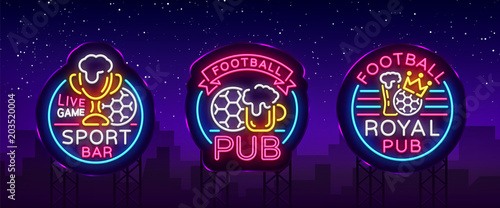 Sports Bar Collection Of Logos In Neon Style Set Neon Signs Soccer Fan Club Light Banner Soccer Football Results For Today