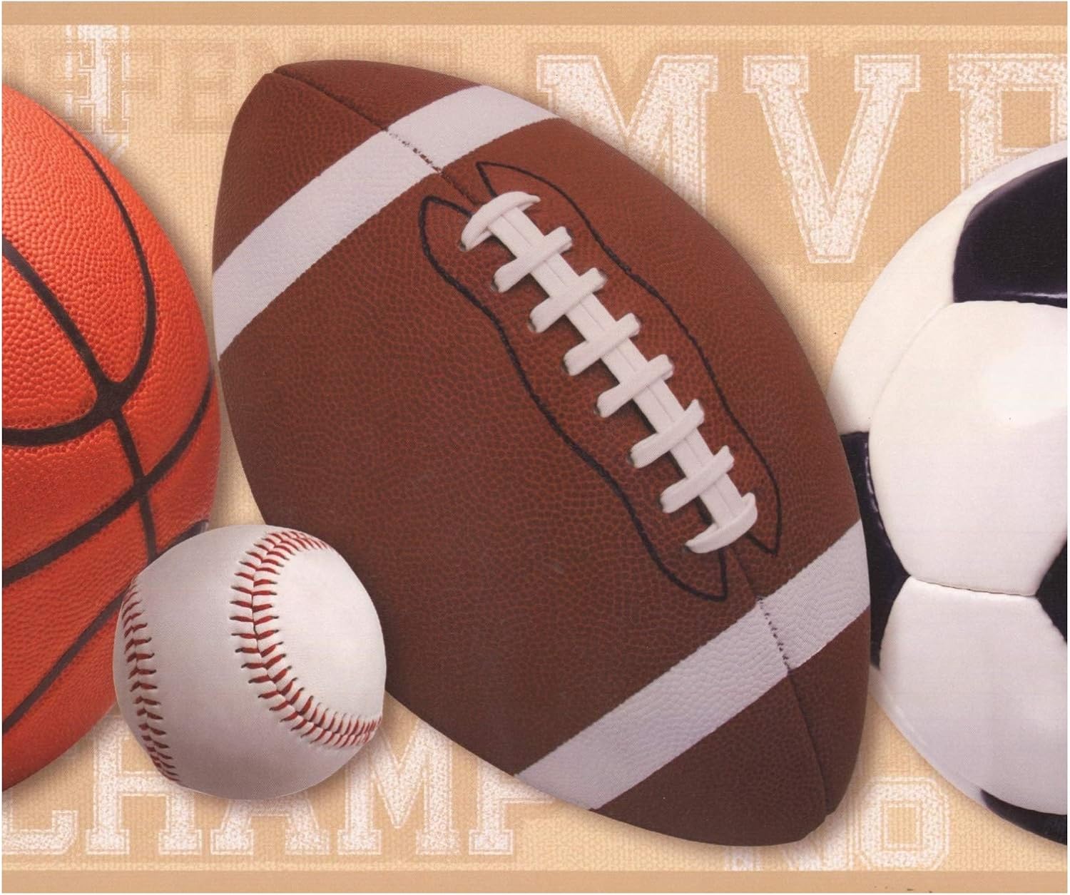Football Basketball Baseball Soccer Ball Beige Sports Wallpaper Border Modern Design Roll 15 X 9 Amazon Co Uk Diy Tools Soccer Games Today Venezuela