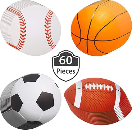 Amazon Com 60 Pieces Sports Ball Cutouts Basketball Football Soccer Volleyball Cutouts For Sports Theme Party Baby Shower Birthday Decoration Toys Games Soccer Aid World Xi Jersey