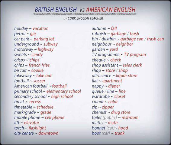 - British And American English 200 Differences Illustrated 7 E S L British Vs American British And American English American English Vs British English